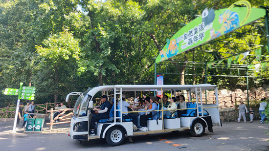 国庆期间,这些熊猫造型的电动观光车将成为红山动物园内一道亮丽的风景线。它们穿梭于各个展区之间,不仅为游客提供了更加便捷、舒适的游览方式,还以独特的方式传播着生态保护的知识与理念。游客们乘坐其中,仿佛置身于一个充满童趣与自然的梦幻世界,感受着人与动物、自然和谐共生的美好愿景。